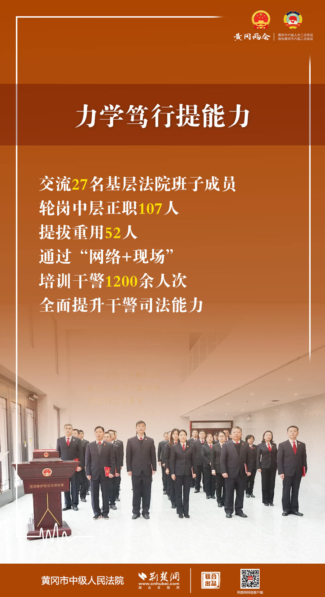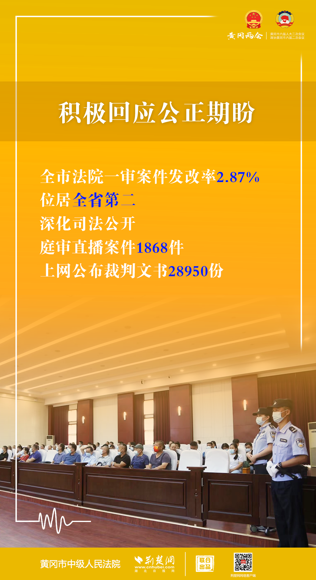1月5日,黃岡市第六屆人民代表大會(huì)第二次會(huì)議開幕,黃岡市中級(jí)人民法院黨組書記、代院長(zhǎng)文利紅向大會(huì)作報(bào)告。