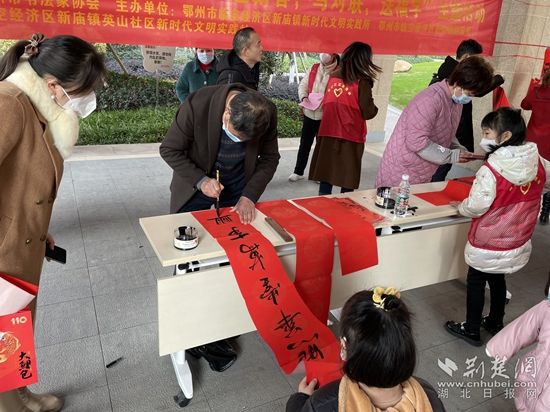正值新春佳節(jié)來臨之際,日前,鄂州市臨空經(jīng)濟區(qū)新時代文明實踐中心志愿服務分隊聯(lián)合新廟鎮(zhèn)新時代文明實踐所、新廟鎮(zhèn)財政所、新廟鎮(zhèn)英山社區(qū)開展“迎新春、贈福字、送春聯(lián)”活動。