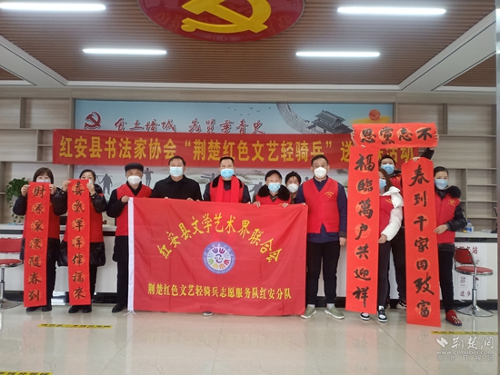 荊楚網(wǎng)(湖北日報網(wǎng))訊(通訊員毛紅平 李紫文)1月13日,紅安縣新時代文明實踐中心、紅安縣文聯(lián)組織縣書法家協(xié)會“荊楚紅色文藝輕騎兵”開展一年一度的送春聯(lián)、送祝?;顒?,到杏花鄉(xiāng)培城社區(qū)為居民群眾免費書寫春聯(lián)200余副,福字80余張,傳遞黨和政府的關(guān)懷與溫暖。
