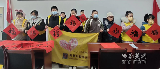 1月17日,在社區(qū)活動室只看見“紅、黃”馬甲身影在忙碌著,原來是陽新縣義工協(xié)會志愿者人稱“會拔牙和書法的義工”石祥帶領(lǐng)9名公益小天使書法愛好者,寫春聯(lián)和“?!弊?,將最美好的新春祝福通過春聯(lián)傳遞給每位社區(qū)居民。一副副寓意平安和諧、吉祥如意的春聯(lián),帶著辭舊迎新的美好祝愿,為即將來臨的春節(jié)增添了濃濃的喜慶氛圍。