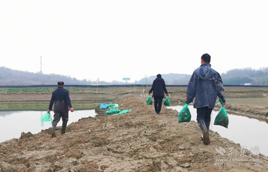 荊楚網(湖北日報網)訊(通訊員 李論 李雅琴)春投一簍苗,秋收萬斤蟹。2月3日,蘄春縣彭思鎮(zhèn)茅山“觀蟹亭”螃蟹基地呈現一派歡聲笑語的忙碌景象。養(yǎng)殖戶伍師傅一家一大早就等候在向陽湖邊,趕著搶抓晴好天氣,給十萬尾優(yōu)質蟹苗“喜遷”新居。