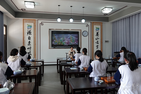 英山地處大別山南麓,是湖北省綠茶主產(chǎn)區(qū)之一。據(jù)悉,英山一中的每位學(xué)生在校期間要完成6個課時的茶藝課程,其中3節(jié)課用來學(xué)習(xí)理論知識,包括茶的起源、分類、中國茶文化,以及基本的茶藝禮儀,另3節(jié)課則進(jìn)行全套茶具實(shí)操訓(xùn)練,完成一個完整的茶藝表演。