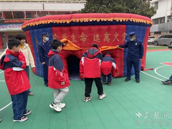 荊楚網(wǎng)(湖北日?qǐng)?bào)網(wǎng))訊(通訊員 陳慧敏 于巧慶) 2月7日下午,隨著亮紅的消防車緩緩駛進(jìn)操場(chǎng),鄂州消防大隊(duì)的“藍(lán)朋友”們來(lái)到洋瀾小學(xué),受到了洋瀾小學(xué)孩子們的熱烈歡迎。