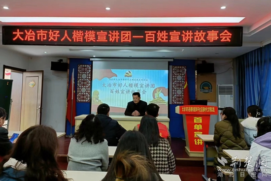 荊楚網(wǎng)(湖北日報網(wǎng))訊(通訊員 石姣、陳佳、陳俊)2月16日上午,“荊楚楷?!薄按笠笔幸娏x勇為先進(jìn)個人”龔文龍在大冶市東岳路街道和平社區(qū)展開宣講。