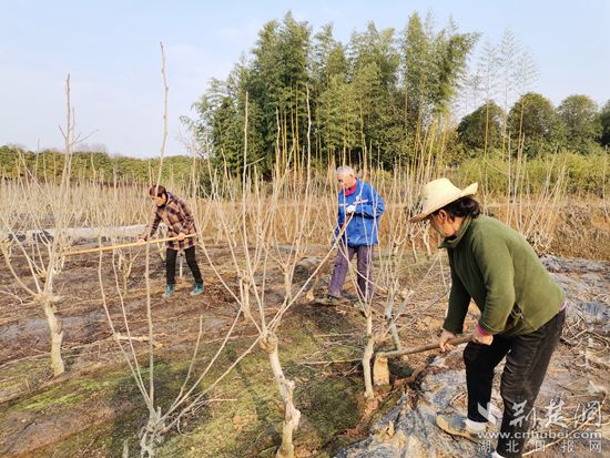 在橫溝橋鎮(zhèn)豐順農(nóng)業(yè)生態(tài)采摘園,10多名果農(nóng)正在精心在給60余畝桑葚樹松土、施農(nóng)家肥。只見果農(nóng)們二人一組,一個(gè)打坑,一個(gè)施肥,然后覆土蓋膜,配合默契。