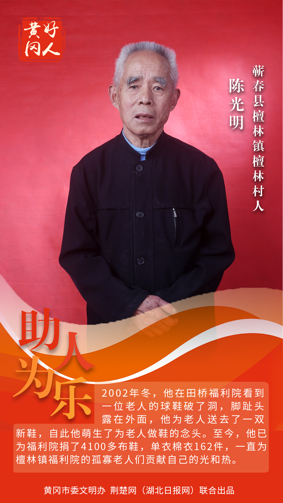 本期“黃岡好人”共有5組好人入選。他們中有“助人為樂、樂善好施”的陳光明;有“敢打硬仗、熱衷公益”的楊志謀;有“危難時刻顯身手”的杜友福;有“海歸博士變身田間耕夫”的潘新星;有“35年堅守,照顧殘障村民如至親”的朱自學、王桂珍夫婦。