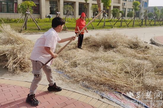 經(jīng)過幾天的曝曬,油菜殼已經(jīng)非常干脆,菜莢里的菜籽“呼之欲出”。5月16日,永河小學(xué)組織部分學(xué)生開展“大豆脫粒”勞動實踐活動。
