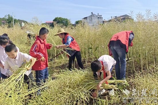 荊楚網(wǎng)(湖北日報網(wǎng))訊(通訊員劉志勇)“田間少閑月,五月人倍忙”。轉(zhuǎn)眼間,紅安縣永河小學(xué)勞動實踐基地里的油菜進(jìn)入收獲期,5月12日,永河小學(xué)各班師生趁著晴好天氣搶收油菜,現(xiàn)場一派繁忙的豐收景象。