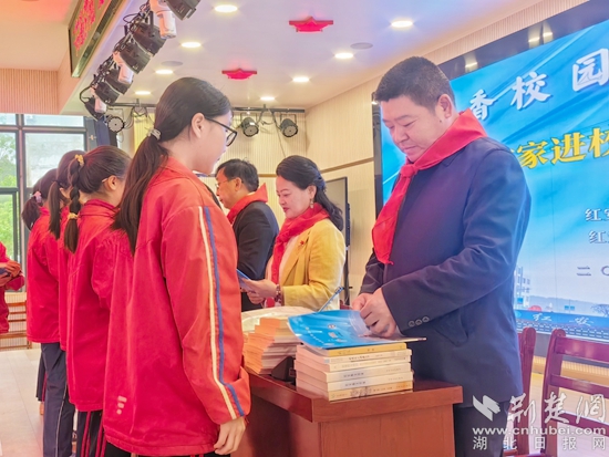 活動伊始,少先隊(duì)員為作家佩戴紅領(lǐng)巾,贈送《子曰》詩刊。紅安縣作協(xié)主席倪先勝為永河小學(xué)的12名學(xué)生頒發(fā)“小作家”證書,同時贈送《紅安文學(xué)》及其它作品。