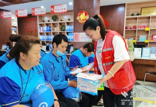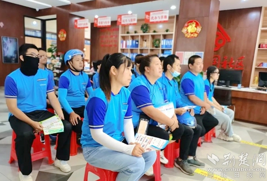 社區(qū)網(wǎng)格員為“藍騎士”們發(fā)放消防安全、預防溺水、防范詐騙等宣傳資料,動員他們在提升自身安全防護意識的同時,也通過優(yōu)質文明的配送服務把“人人講安全 個個會應急”的理念傳遞給更多人。