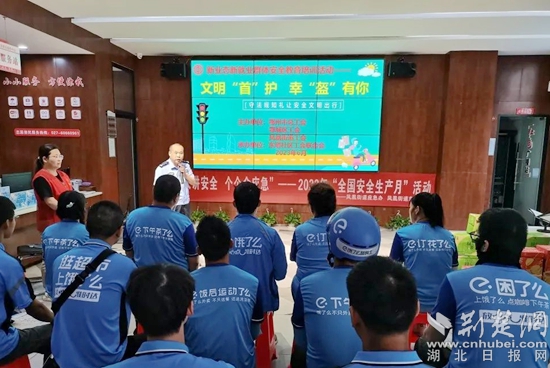 活動特別邀請市公安局交通管理局五大隊一中隊鳳凰分隊的趙錦雄為社區(qū)新業(yè)態(tài)新就業(yè)服務聯(lián)盟成員單位——“餓了么”長江天下站的“藍騎士”們上了一堂精彩又實用的交通安全教育課。