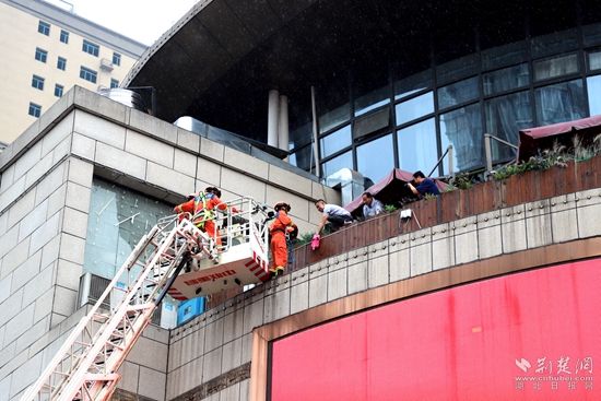 “喂,你好,我們金泰廣場這邊著火了......”活動現場還進行了大型商業(yè)綜合體消防應急救援演練。演練模擬金泰廣場一樓賣場起火,三、四樓有人員被困。演練單位同步啟動應急自救預案,廣播、安保人員迅速引導樓內人員撤離,并啟動樓棟內部固定消防設施。