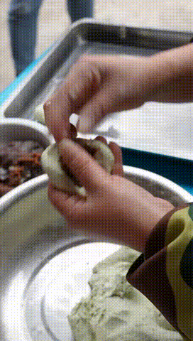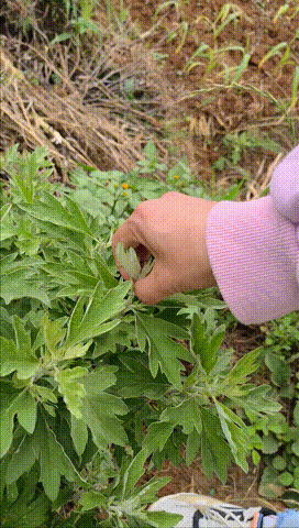 采艾草最鮮嫩的葉尖兒煮沸后過濾出青色汁液