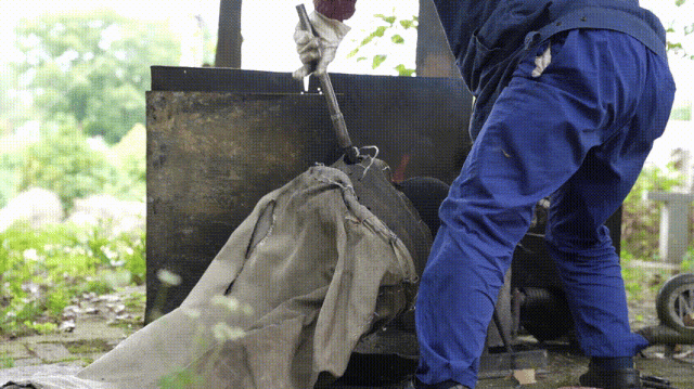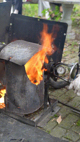 鼓風機將煤球燒得通紅