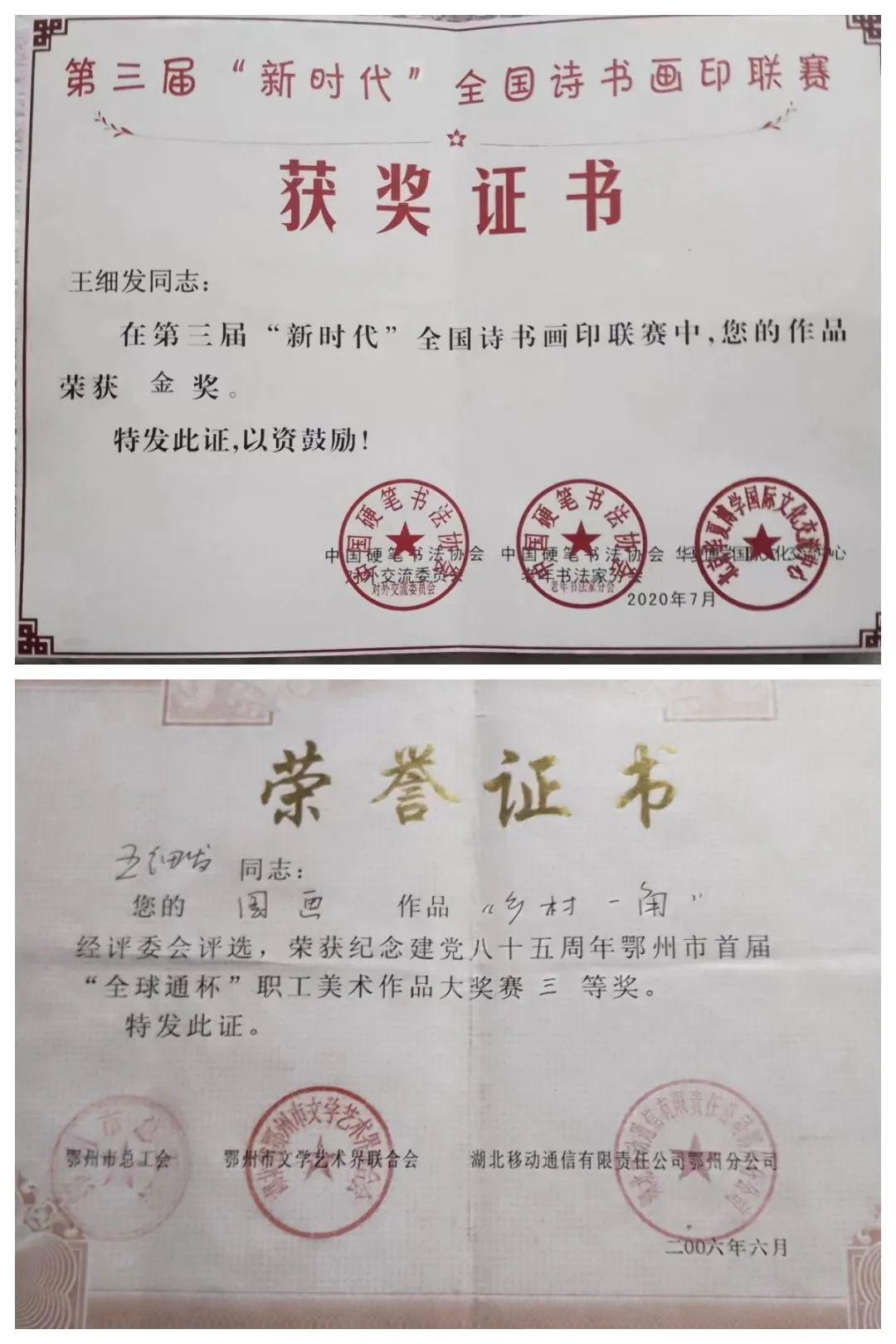 全國詩書畫印聯(lián)賽金獎