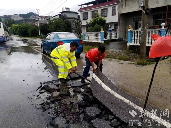 面對突發(fā)險情,咸安區(qū)公路管理局立即啟動應急預案,全體養(yǎng)護人員冒雨上路搶通保暢。