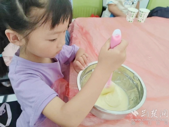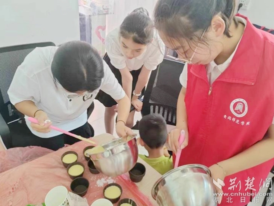 荊楚網(wǎng)(湖北日?qǐng)?bào)網(wǎng))訊(記者陶輝 通訊員 黃知樂 馮鶴林 李佳佳)7月10日,記者來到黃州區(qū)路口社區(qū)暑期社會(huì)實(shí)踐點(diǎn),遠(yuǎn)遠(yuǎn)地就聞濃郁的香味。青春黃師服務(wù)隊(duì)熠夢(mèng)小隊(duì)的志愿者們正和小朋友們一起制作蛋糕,現(xiàn)場(chǎng)其樂融融、歡聲笑語(yǔ)此起彼伏。