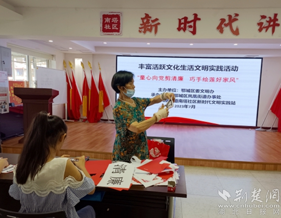 荊楚網(湖北日報網)訊(通訊員 丁元中)一刀一剪揚正氣,一毫一厘頌清風。7月12日上午,鄂城區(qū)鳳凰街道南塔社區(qū)聯合鄂州市婦聯、鄂城區(qū)婦聯、鳳凰街道婦聯開展了“童心向黨剪清廉,巧手繪蓮好家風”剪紙活動,將廉政素材與傳統(tǒng)剪紙相結合,用民俗藝術展現清廉之風。