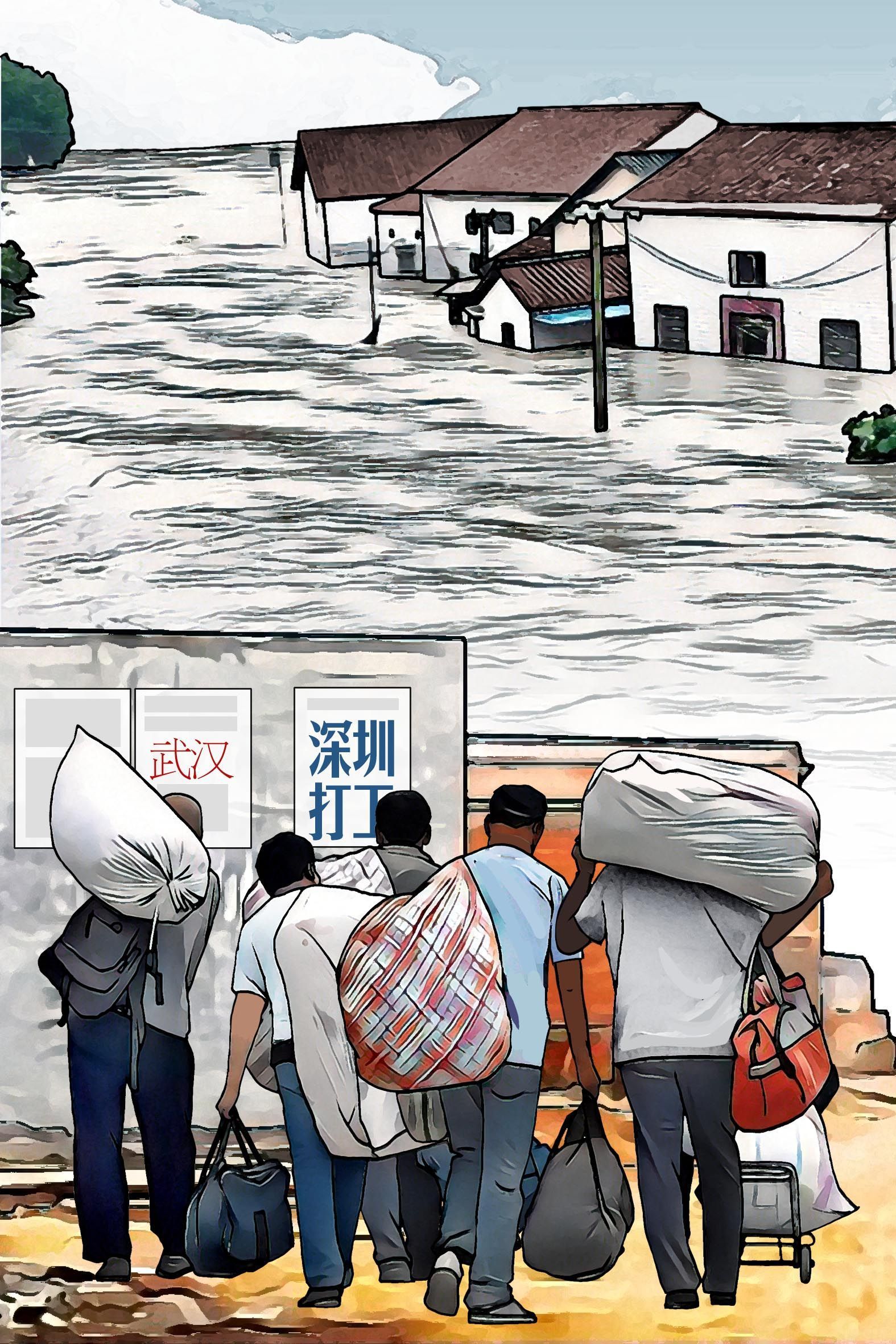 1996年至1998年,三年水患,許多村民顆粒無收、血本無歸。連年歉收后,鄉(xiāng)親們逐漸對(duì)種田失去信心。不少村民賣掉耕牛,閉門鎖戶,前往廣州、深圳、武漢等地打工。