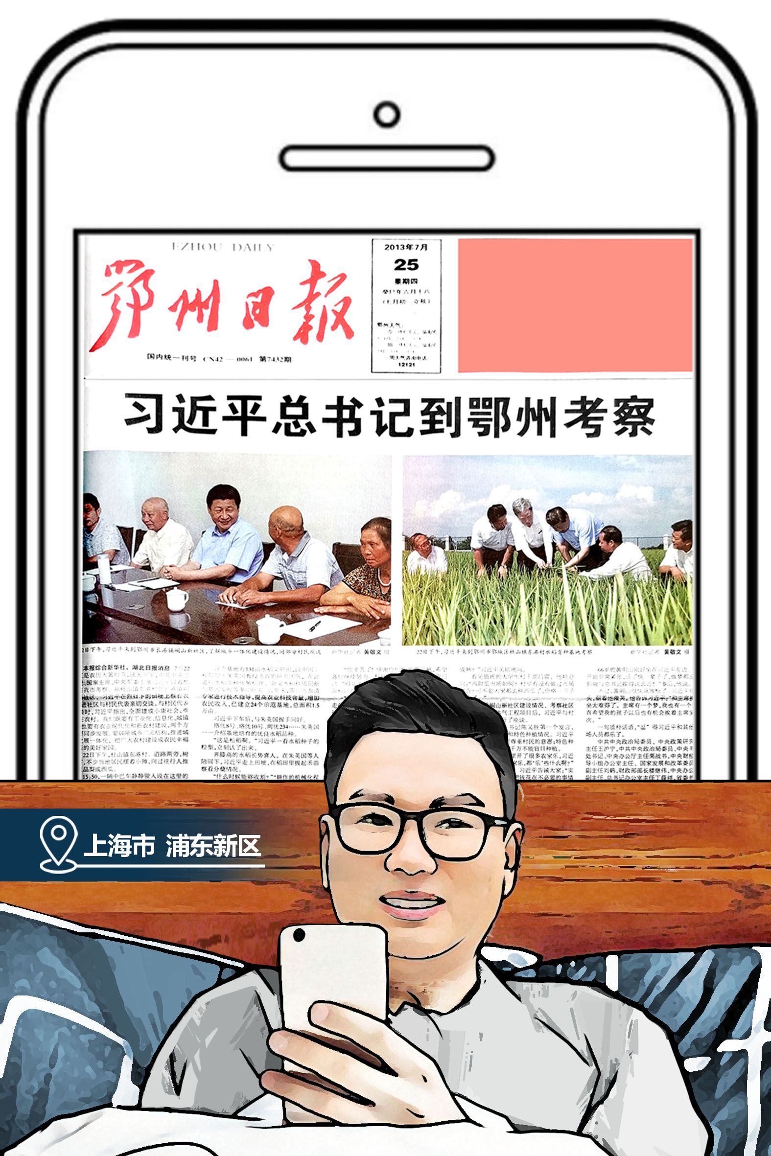 2013年7月22日,得知習近平總書記視察峒山村,陳川喜出望外,第一時間向身邊好友分享這個好消息。