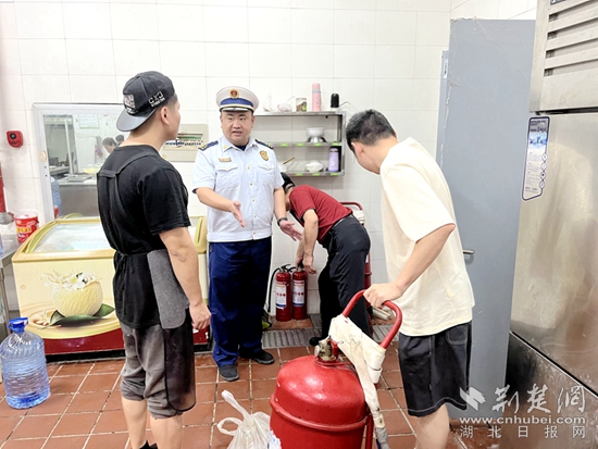 期間,檢查人員重點檢查了場所內(nèi)消火栓和滅火器是否完好有效、燃?xì)鈭缶b置運行是否正常、廚房燃?xì)廛浌苁欠穹弦?、燃?xì)夤芫€和閥門等設(shè)備是否存在老化、油煙管道及灶具是否定期清理、有無亂搭亂接大功率插頭和電線、場所從業(yè)人員是否掌握消防安全常識和撲救初起火災(zāi)的能力等情況。
