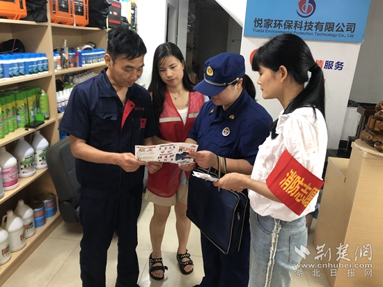 在西塞山區(qū),消防人員走進(jìn)沿街門面開展消防安全檢查宣傳?!疤鞖庋谉?,用電量劇增,請(qǐng)不要私拉亂接線路、超負(fù)荷用電,要經(jīng)常檢查線路敷設(shè)是否完好?!毕廊藛T一邊檢查,一邊提醒商戶要經(jīng)常開展消防隱患自查自改,同時(shí)要熟練掌握滅火器、消火栓等器材使用方法。下陸區(qū)消防救援大隊(duì)結(jié)合夏季高溫防火特點(diǎn),整合戶外大屏、社會(huì)單位LED屏幕等社會(huì)資源循環(huán)播放夏季防火提示公告、高溫防火提示,提醒廣大人民群眾規(guī)范用火、用氣、用電。