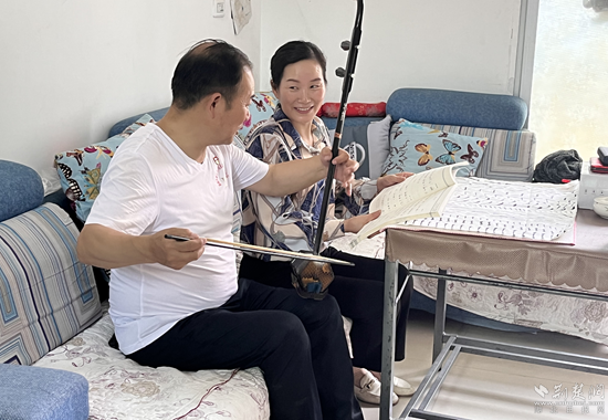 “這句詞應(yīng)該這么唱……你這個節(jié)拍錯了……”清晨常常成為夫妻倆相互“切磋”的時光。為保證宣講效果,田志剛夫妻利用閑暇時光練習(xí)宣講詞、控制好快板的力度和鼓點節(jié)奏,也會在一起唱唱黃梅戲、拉拉二胡、跳跳舞。