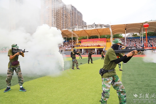 作為新生代表,高一(6)班學(xué)生周陽介紹,七天特訓(xùn)活動中,在教官、老師的關(guān)懷與幫助下,大家學(xué)會了停止間和行進(jìn)間的隊(duì)列動作,學(xué)會了唱戰(zhàn)歌、打拳擊,也體驗(yàn)了持槍戰(zhàn)士沉甸甸的使命和國旗手以身護(hù)旗的擔(dān)當(dāng)。