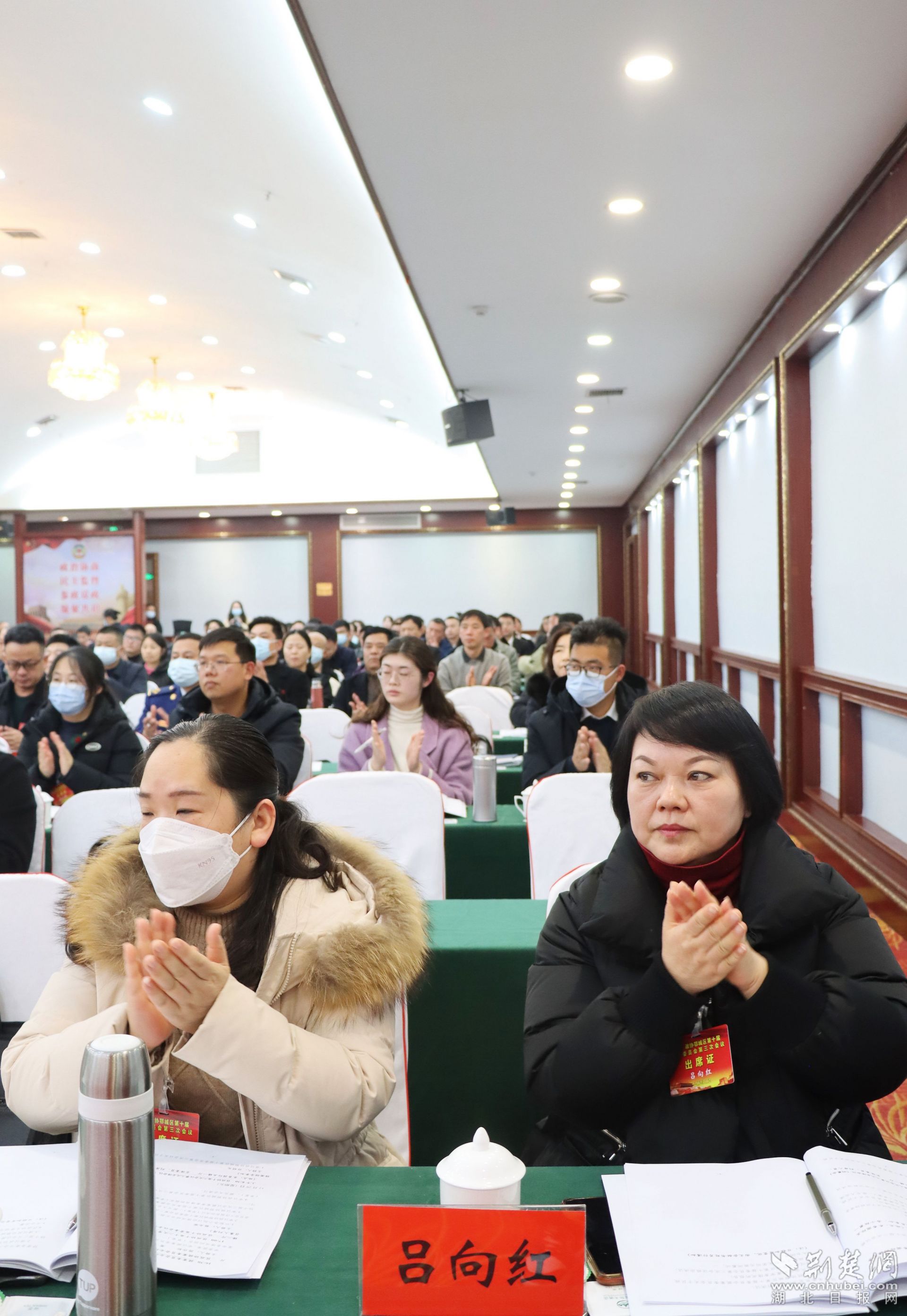 鄂城區(qū)政協(xié)主席楊光榮代表政協(xié)鄂城區(qū)第十屆委員會(huì)常務(wù)委員會(huì)作工作報(bào)告。胡小軍 攝