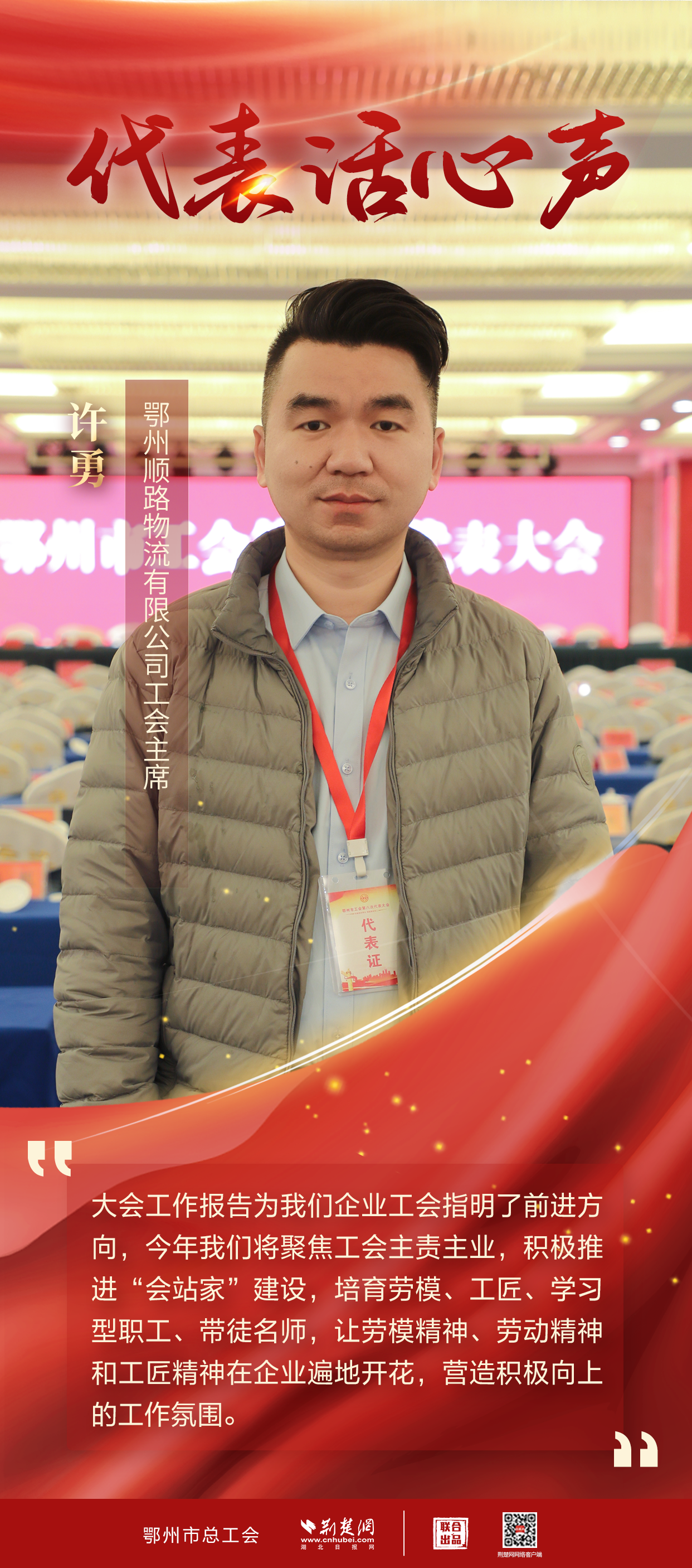 荊楚網(湖北日報網)訊(記者 姜夢瑤 實習生 趙永春、張玖杰 通訊員 魏君)1月4日,鄂州市工會第八次代表大會開幕,來自全市各行各業(yè)的233名代表一同談發(fā)展、說變化、道期盼。
