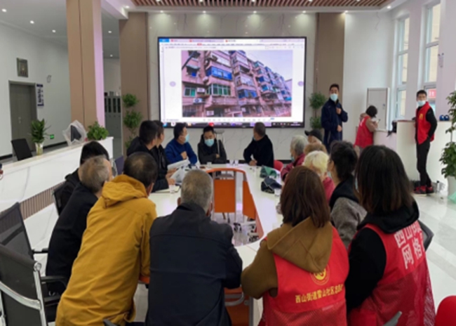 在34棟天面整治項目中,雷山社區(qū)通過“線上+線下”創(chuàng)新共謀方式對居民需求摸底,引導(dǎo)居民參與建言獻策,搭建社區(qū)議事廳-網(wǎng)格驛站-議事點等共謀陣地5處,從居民反映最強烈為主進行開展入戶摸排了解情況。