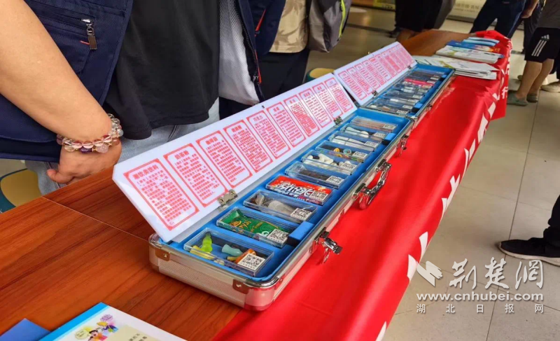 在長港路地鐵站出口,還可以看到江漢區(qū)司法局和禁毒部門組織陳列展示的“奶茶粉”“跳跳糖”等30種新型偽裝毒品。戒毒民警結(jié)合這些新型毒品的特點,對來往的行人深入講解其隱蔽性、危害性以及防范要點,著重提醒市民在出入娛樂場所時務(wù)必提高警惕。