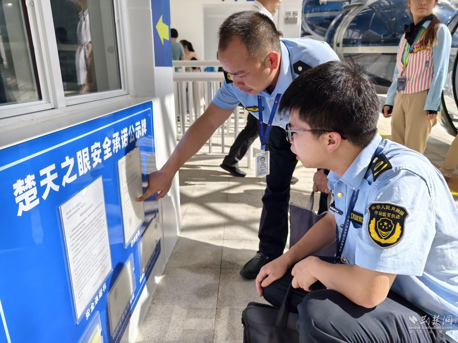 “喂!能聽見嗎?”東西湖區(qū)市場(chǎng)監(jiān)管局執(zhí)法人員程豐元乘坐全景“太空艙”到達(dá)最高處,按下艙內(nèi)“緊急對(duì)講”,測(cè)試報(bào)警設(shè)施通話中,地面值班室工作人員迅速應(yīng)答,溝通清晰流暢。經(jīng)檢查,在 10 人以內(nèi)的承載情況下,轎廂門啟動(dòng)關(guān)閉正常,空調(diào)運(yùn)行良好,報(bào)警電話暢通無(wú)阻,各項(xiàng)設(shè)施均具備運(yùn)行開轉(zhuǎn)條件。