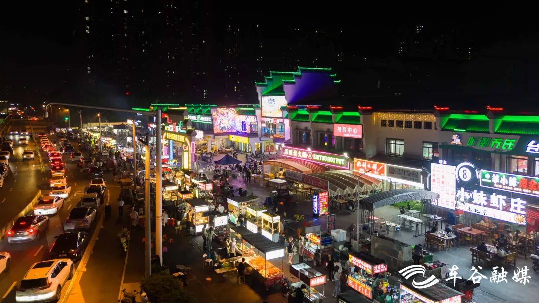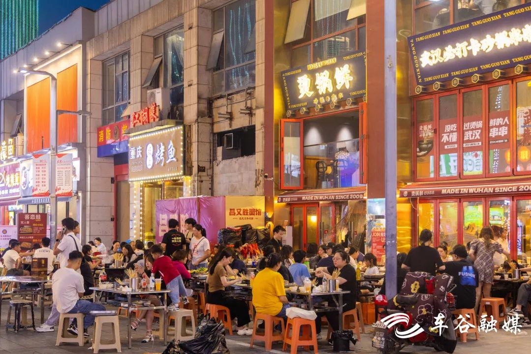 網(wǎng)紅集裝箱集市上,人們?nèi)宄扇?,手捧奶茶,聊天、散步,打工人迎來一天中最松弛的時(shí)刻。不遠(yuǎn)處,兒童樂園傳來陣陣歡笑,快樂氣球屋、小雞快跑是孩子們的最愛。萬達(dá)金街上,烤串、麻辣燙飄香,耳邊傳來“走,去擼串!”“快來,吃油燜大蝦!”