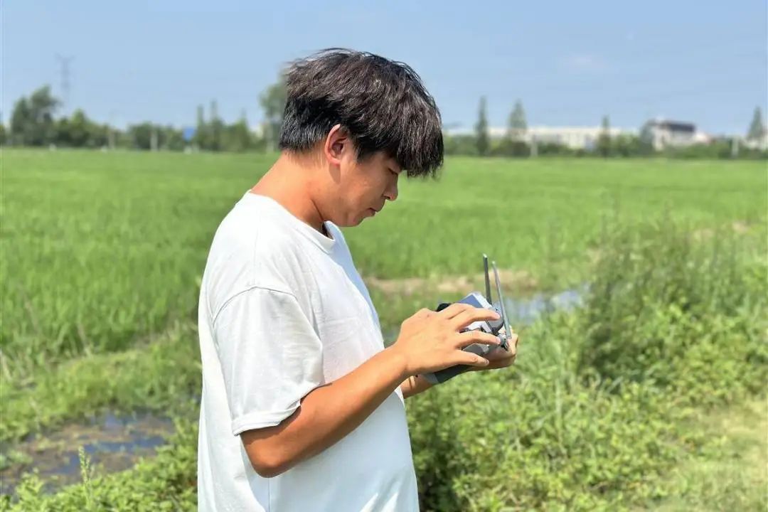 “混合肥料包含水稻專用肥、微量元素水溶肥以及磷酸二氫鉀,按科學(xué)比例調(diào)配。施肥過程中,無人機(jī)的參數(shù)設(shè)置通常為高度3米、噴幅6米、飛行速度每秒13.8米?!碧照芩闫稹靶寿~”,“無人機(jī)作業(yè)8小時(shí),就能完成500畝的施肥,相比人工作業(yè),效率大幅提升?!?/p>