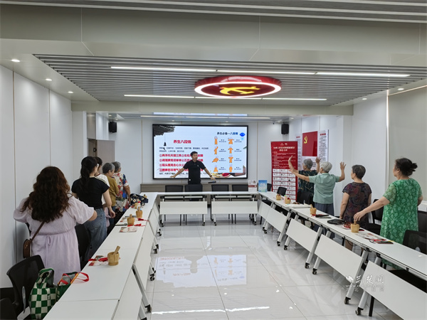 隨后,醫(yī)師帶領(lǐng)居民們學(xué)習(xí)傳統(tǒng)養(yǎng)生功法“八段錦”。伴隨著舒緩的口令,大家認(rèn)真練習(xí)“雙手托天理三焦”“左右開弓似射雕”等動作,體驗(yàn)中國傳統(tǒng)運(yùn)動在調(diào)理氣血、舒緩壓力方面的功效。