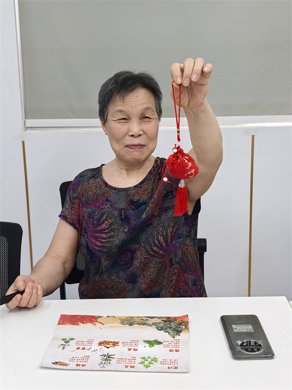 手工香囊制作區(qū),居民們精心調(diào)配艾草、薄荷、丁香等中藥材,親手制作出一個個藥香清雅、造型精致的養(yǎng)生香囊,既體驗(yàn)了動手樂趣,也學(xué)習(xí)了中藥養(yǎng)生知識。
