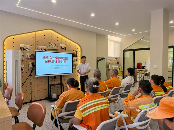 法律小課堂上,律師劉銳用情景劇還原“中暑取消訂單被扣款”的常見(jiàn)糾紛,瞬間抓住眾人注意力。他結(jié)合《防暑降溫措施管理辦法》第14條,把“高溫作業(yè)權(quán)益保障”“維權(quán)流程”等法條拆成大白話,還設(shè)置快問(wèn)快答環(huán)節(jié),細(xì)致解答工資結(jié)算、工傷認(rèn)定等疑問(wèn)。工會(huì)小組同步開(kāi)通應(yīng)急維權(quán)通道,將法律咨詢鏈接至工會(huì)二維碼,方便勞動(dòng)者隨時(shí)求助?!耙郧坝龅郊m紛怕麻煩,現(xiàn)在不僅清楚有哪些權(quán)益,還清楚了維權(quán)途徑,心里更有底了。”外賣員王師傅掃碼關(guān)注后說(shuō)道。