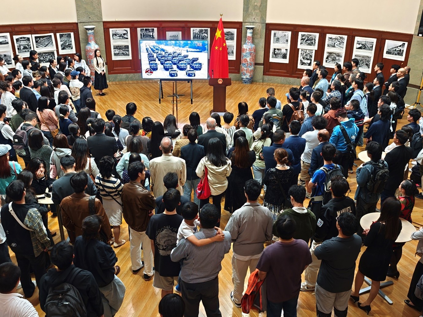 隨后,來賓們集體觀看圖片展,回顧日本法西斯侵華的累累罪行,以及這場全民族眾志成城、艱苦卓絕的偉大勝利。大家并共同觀看了“9·3”閱兵精彩片段,對剛毅威武的人民之師,集中亮相的新武器新裝備贊不絕口,表示新時代人民軍隊完全有信心、有能力維護國家獨立自由,維護世界和平安寧。