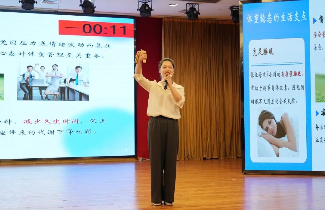 孝感市中心醫(yī)院副院長(zhǎng)張海燕在健康科普大賽上進(jìn)行致辭,經(jīng)過(guò)前期預(yù)賽,18位來(lái)自各醫(yī)聯(lián)體成員單位的參賽代表同臺(tái)競(jìng)技,圍繞慢性病管理、急救常識(shí)、婦幼健康、老年健康等群眾關(guān)切的健康話題開(kāi)展了科普宣講。