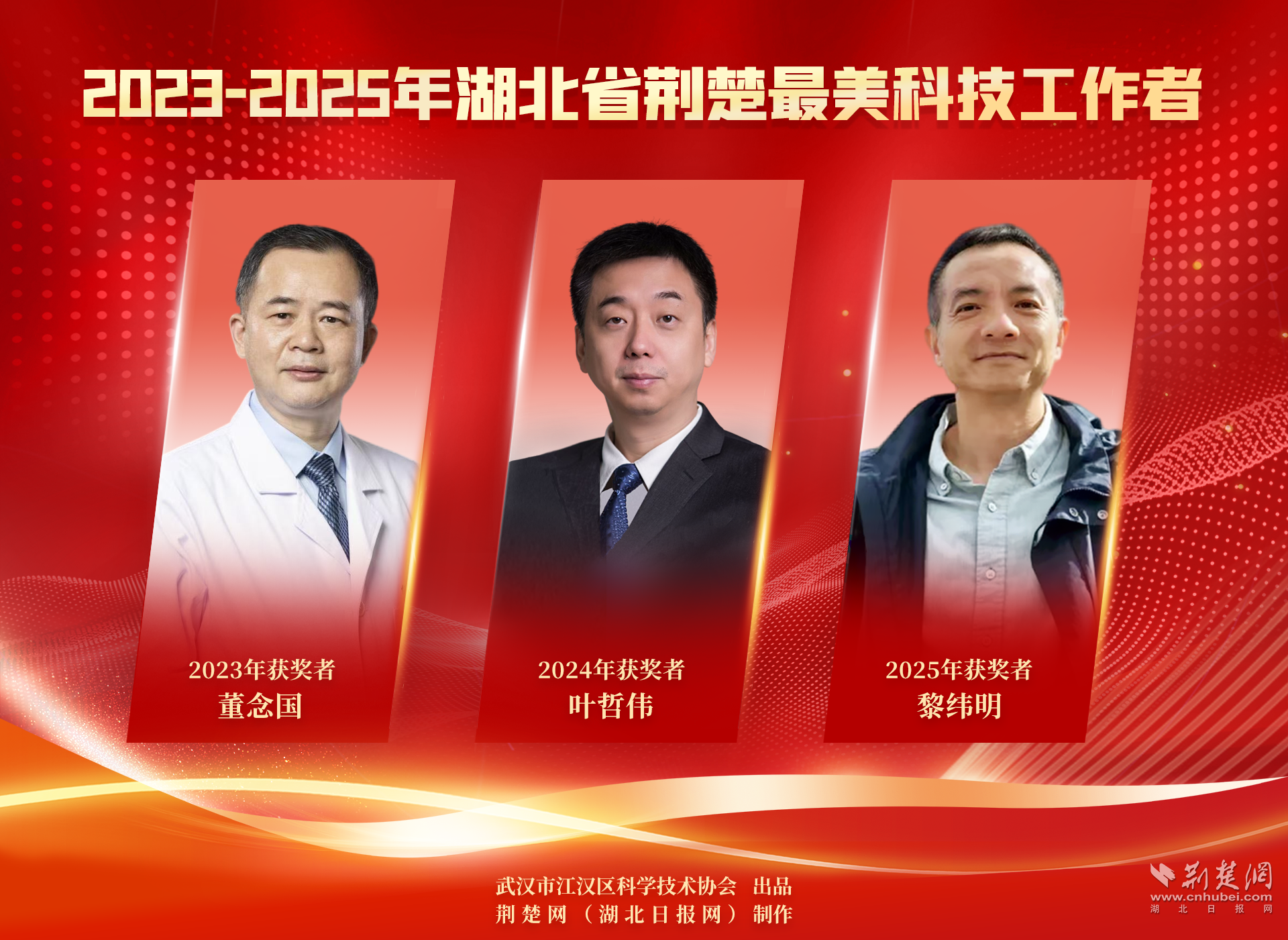 荊楚網(wǎng)(湖北日?qǐng)?bào)網(wǎng))訊(記者 何婧 通訊員 邱豐)一人一星火,三載成星河。董念國(guó)、葉哲偉、黎緯明,由江漢區(qū)科協(xié)選樹的科技工作者連續(xù)三年登頂湖北省“荊楚最美科技工作者”獎(jiǎng)項(xiàng),成為湖北省唯一一個(gè)“三連冠”的區(qū)。