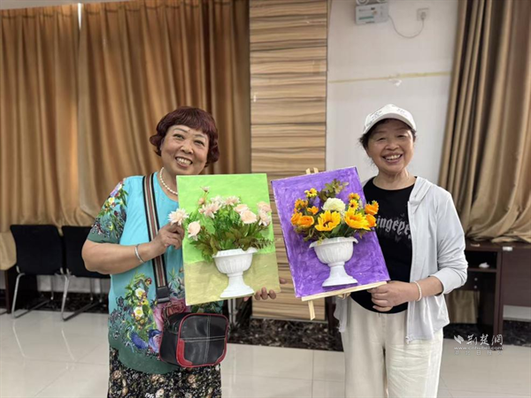 “這旋律一聽(tīng)就熟!是《沒(méi)有共產(chǎn)黨就沒(méi)有新中國(guó)》!”紅歌競(jìng)猜環(huán)節(jié),老黨員們爭(zhēng)相搶答,經(jīng)典旋律喚起共同記憶,現(xiàn)場(chǎng)氣氛格外熱烈。隨后的油畫(huà)創(chuàng)作中,大家在老師的指導(dǎo)下手握畫(huà)筆、挑選顏料,在畫(huà)板上細(xì)細(xì)涂色,并將永生花點(diǎn)綴在畫(huà)作中。經(jīng)過(guò)數(shù)小時(shí)的設(shè)計(jì)制作,一幅幅獨(dú)具創(chuàng)意的立體畫(huà)在居民們手中誕生。