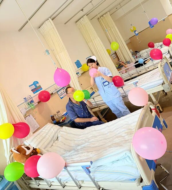 跟著這個(gè)方法練習(xí),楊叔叔的進(jìn)步肉眼可見:從一開始只能吹鼓小半只氣球,到后來能連續(xù)吹完兩三只;從吹氣球時(shí)會(huì)忍不住咳嗽,到胸口的緊繃感越來越輕,甚至能自己繞著病房走兩圈。如今,走進(jìn)楊叔叔的病房,粉、紫、綠、紅的氣球隨處可見,成了病房里最亮眼的裝飾?!澳憧?,這都是我這幾天吹的,每個(gè)護(hù)士進(jìn)來都會(huì)說好看,隔壁床病友也覺得好看!” 楊叔叔說起這些氣球,語(yǔ)氣里滿是自豪。
