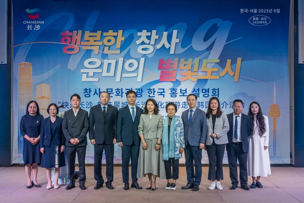 長(zhǎng)沙文化旅游走進(jìn)韓國(guó)推介活動(dòng)19日在首爾舉行,圖為中韓嘉賓合影。中國(guó)駐首爾旅游辦事處供圖