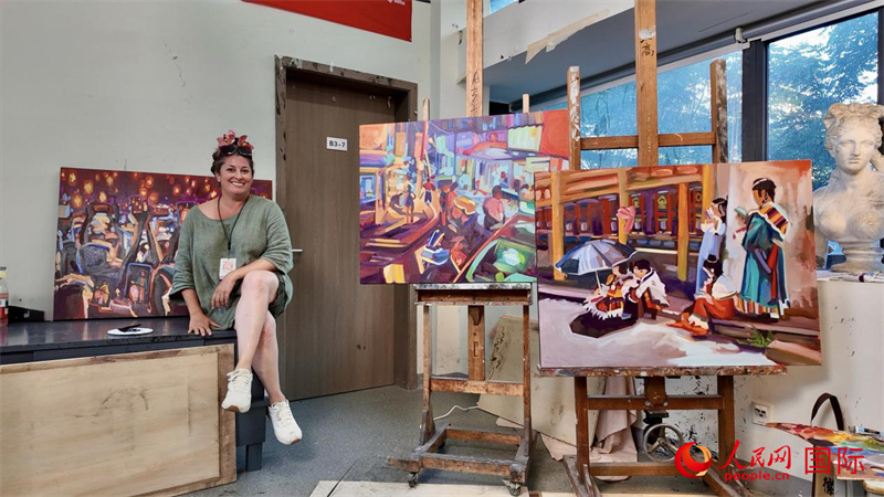 加拿大藝術家米歇爾在中國美術學院畫室創(chuàng)作。人民網(wǎng) 嚴小晶攝