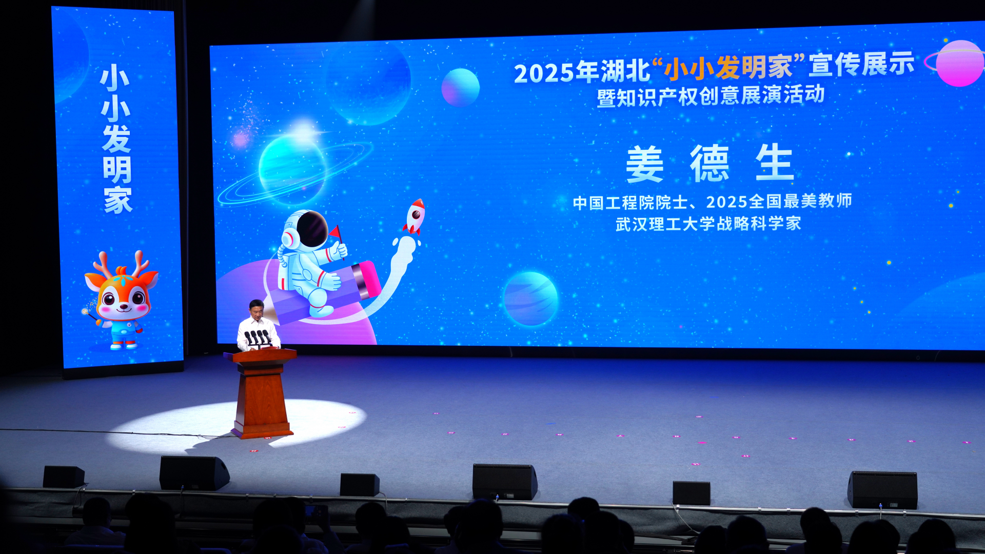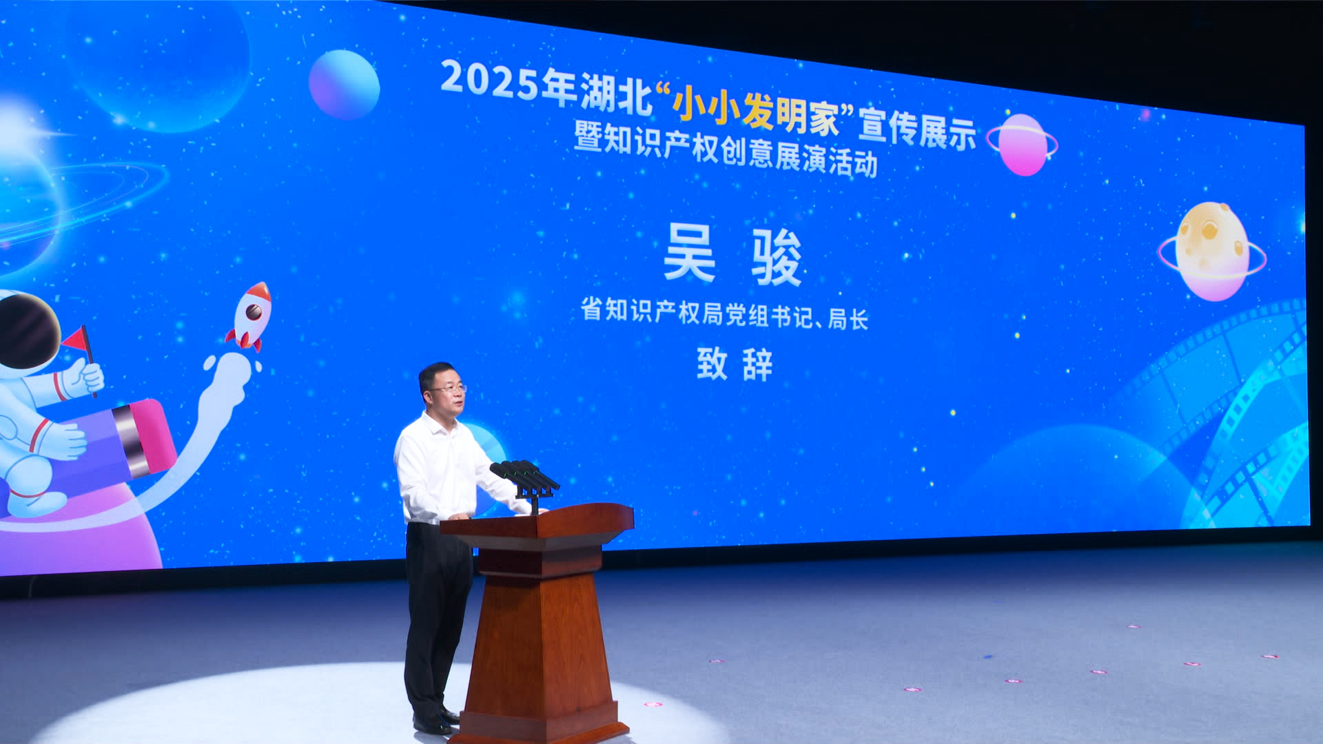 活動在武漢市光谷第二十一小學(xué)樂隊和機器人共同帶來的開場秀《閃耀明天》中拉開帷幕。湖北省知識產(chǎn)權(quán)局黨組書記、局長吳駿致辭表示,此次活動旨在為全省熱愛科學(xué)、勇于創(chuàng)新的青少年們搭建一個激發(fā)靈感、展示才華、交流互鑒的廣闊平臺,讓創(chuàng)新的種子在幼小的心靈中生根發(fā)芽,讓知識產(chǎn)權(quán)的理念在青春的土壤里茁壯成長。他親切寄語“小小發(fā)明家”,永葆好奇之心,敢于提問,善于思考,勤于動手,將天馬行空的想象變成創(chuàng)新創(chuàng)造的作品;初識知識產(chǎn)權(quán),了解它、尊重它、運用它,學(xué)會保護創(chuàng)意,尊重發(fā)明創(chuàng)造;同時志存高遠,將今天的興趣發(fā)展成為明天的志向,努力成長為科技自立自強的棟梁之材。