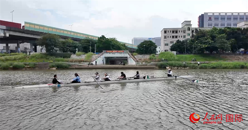 人民網(wǎng)外國專家在茅洲河體驗(yàn)賽艇。人民網(wǎng) 王君哲攝