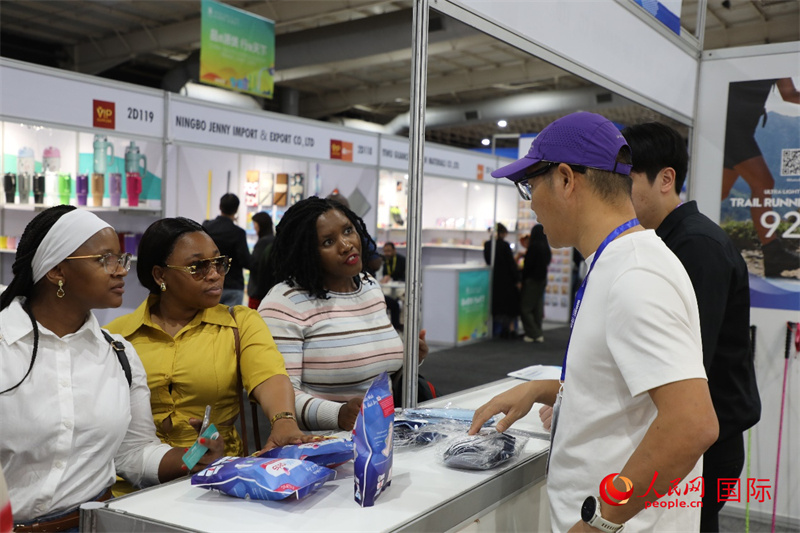 在第九屆中南貿(mào)易博覽會(huì)上,參觀者與中國展商交流。人民網(wǎng)記者 戴楷然攝