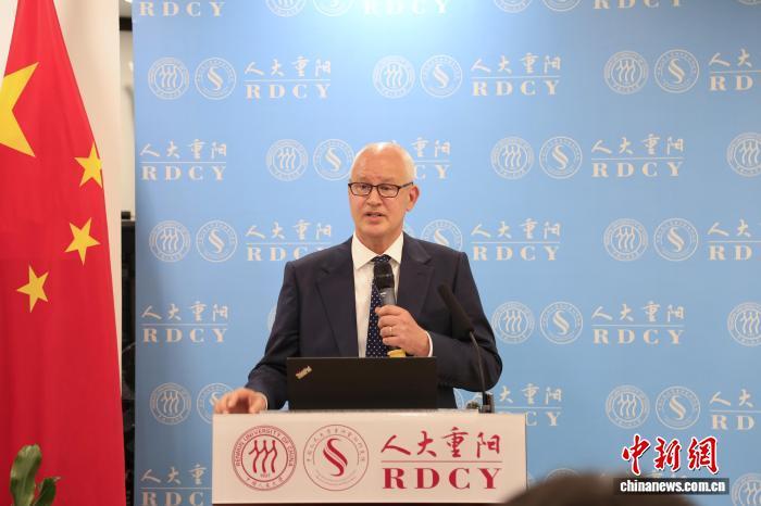 9月25日,英國駐華大使魏磊(Peter Wilson)在北京出席由中國人民大學(xué)重陽金融研究院主辦的區(qū)域國別論壇之“大使講壇”活動。(主辦方供圖)