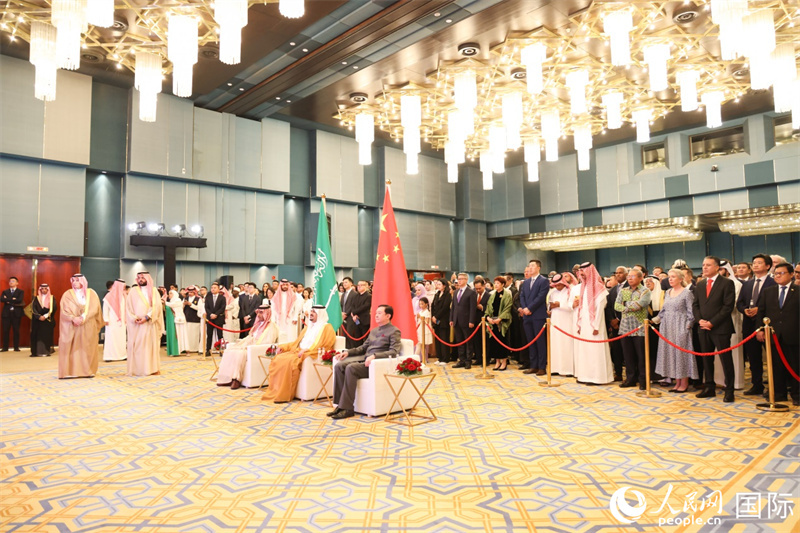 人民網(wǎng)利雅得9月26日電(記者任皓宇)9月25日,中國(guó)駐沙特使館舉行招待會(huì),熱烈慶祝中華人民共和國(guó)成立76周年和中沙建交35周年。沙特利雅得地區(qū)副埃米爾穆罕默德·本·阿卜杜拉赫曼親王、沙內(nèi)政部副大臣阿卜杜勒阿齊茲·阿亞夫親王、沙外交部次大臣賽馬里以及沙政府有關(guān)部門和軍隊(duì)高級(jí)官員,各國(guó)駐沙使節(jié)和伊斯蘭合作組織代表,沙各界友好人士,在沙中資機(jī)構(gòu)、教師留學(xué)生、華僑華人代表約600人出席。